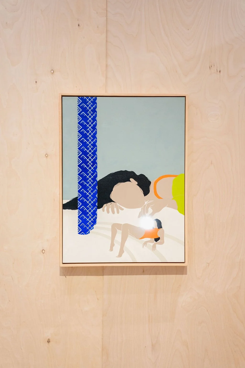 Derrière la reproduction des parements de poterie autochtones, les mentions de lettres absentes de l’alpahbet Wendat et de son numéro de statut, Alexis Gros-Louis soulève des questions touchant l’autodétermination des peules et des individus. Claudia Bernal et Maryam Izadifard explorent divers aspects de l’expérience féminine et invitent à une ré-appropriation des stéréotypes qui la régissent. Natacha Clitandre fait écho à l’activité des jeunes dans une carrière désaffectée et oubliée du quartier Saint-Michel. À partir de photographies de famille, Livia Daza-Paris explore le vécu et l’histoire parfois traumatique de son immigration au Canada. Clara Tissot redécouvre la culture berbère de sa grand-mère, jusqu’ici peu exprimée. Nadia Gagnée utilise ses propres cheveux pour reproduire par feutrage une étiquette de vêtement, en mettant en avant son expérience intime dans la notice de fabrication et les consignes d’entretien. Rojin Shafiei explore quant à elle comment le temps module la présence au monde de tout individu. Dans un univers “surréaliste”, Isabelle Lapierre peint les fantasmes et les figures imaginaires qui la hantent, mais familières à plusieurs d’entre-nous.